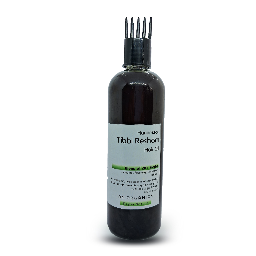 + Free ShippingTibbi Resham Hair Oil is an organic formulation designed to deeply nourish the scalp and strengthen hair from the roots. It helps to reduce hair fall, promote healthy growth, and enhance the natural shine and texture of your hair.